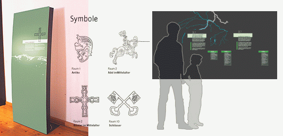 Das Kloster Asbach beherbergte einen Teil der Bayerisch-Oberösterreichischen Landesaustellung 2004 »grenzenlos. Geschichte der Menschen am Inn«. Beauftragt mit der Beschriftung sämtlicher Exponate, stellten wir ein Konzept zusammen, das den gegebenen klassischen Rahmen der Ausstellung beibehielt.