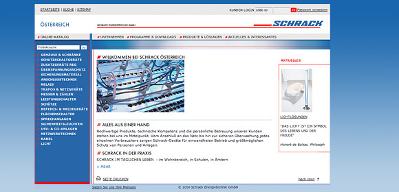 Mit der neuen Website zeigt die international agierende SCHRACK Energietechnik-Gruppe in ihre neue „Selbstständigkeit« als eigenständige österreichische Firma. Ziel des Redesigns: technische Kompetenz zu zeigen, einen schnellen Zugang zum großen Produktkatalog anzubieten und vor allem – das vorgegebene Corporate Design mediengerecht umzusetzen.