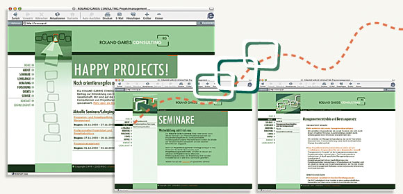 Die Unternehmensberatung Roland Gareis Consulting arbeitet im Bereich der Weiterentwicklung der Kompetenzen von projektorientierten Unternehmen. Deshalb orientiert sich das Design der Website an einer Art Schritt-für-Schritt-Prinzip. www.rgc.at